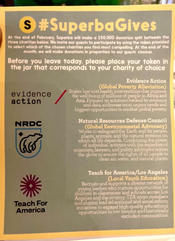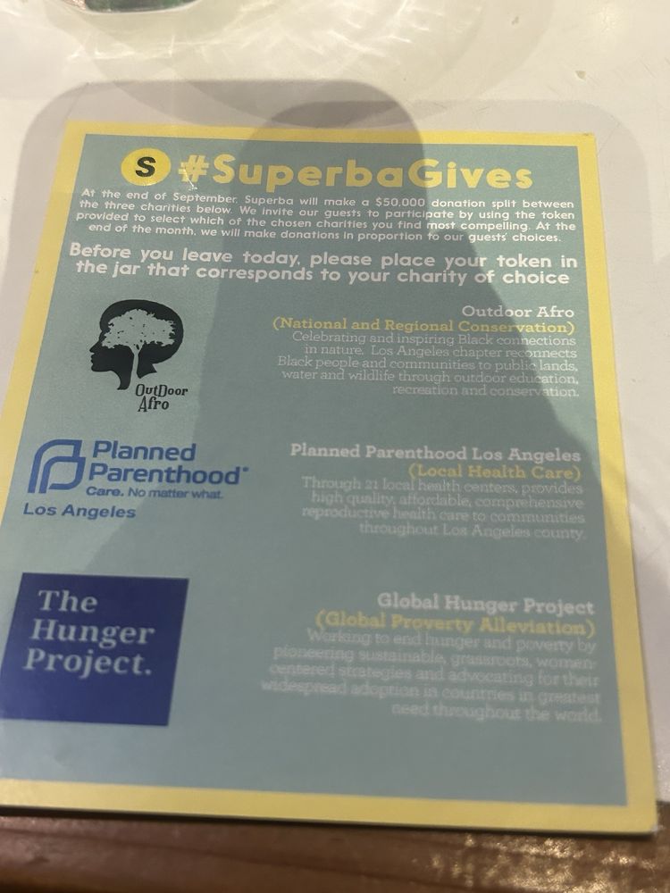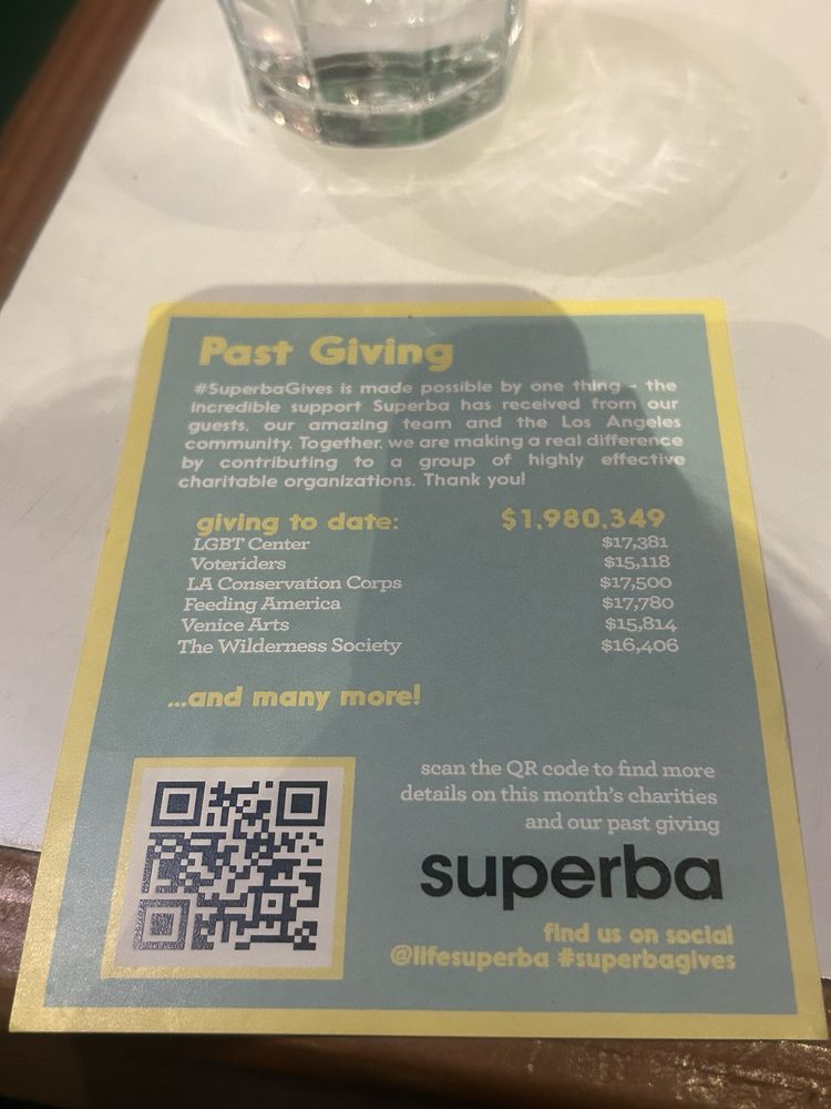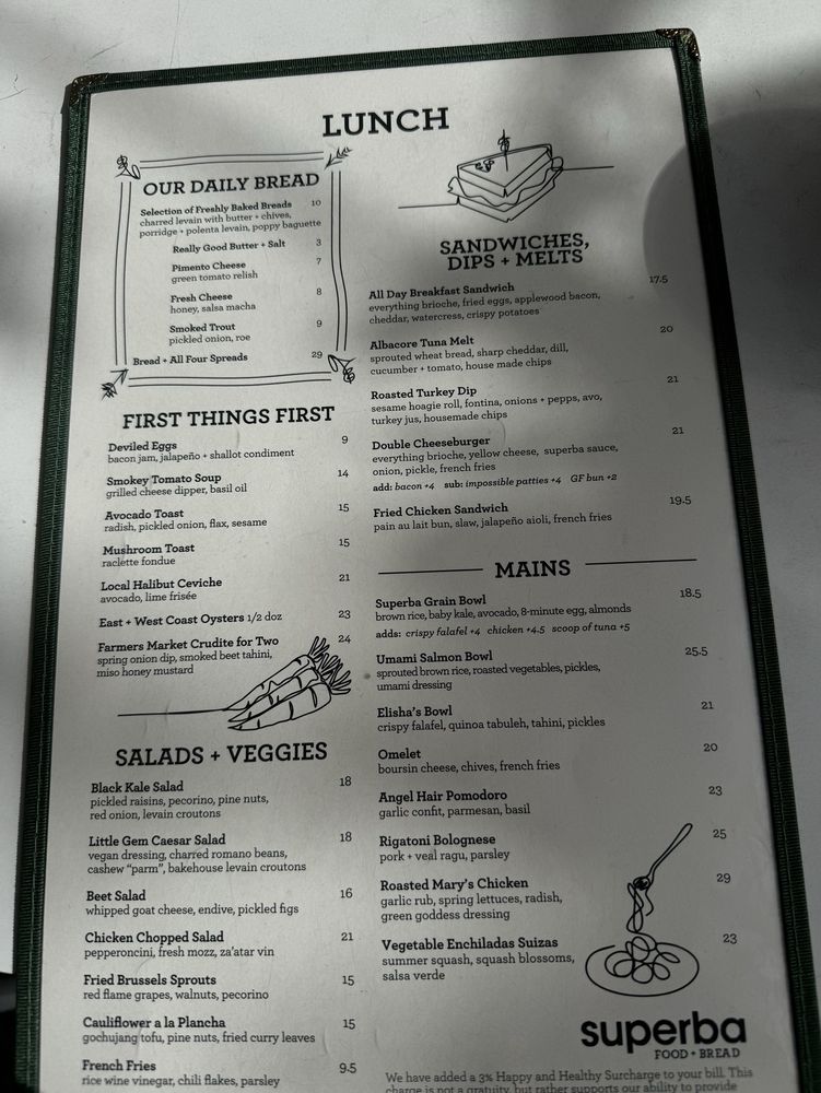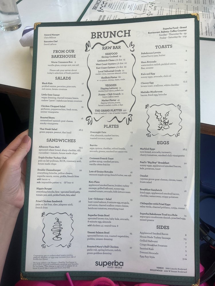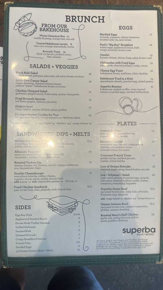 Introducing the menu at Superba Food + Bread, a trendy and classy New American bakery in Venice, CA. This establishment offers a variety of gluten-free, vegan, and vegetarian options, making it a great choice for those with dietary restrictions. From breakfast to lunch, Superba Food + Bread provides a wide selection of delicious dishes that cater to all tastes. With options for outdoor seating and dog-friendly accommodations, this restaurant is perfect for both solo diners and groups. The menu features items made with sustainable practices, like compostable containers and plastic-free packaging, showcasing their commitment to the environment. Don't miss out on trying their beer and wine offerings while enjoying the laid-back atmosphere. Make sure to stop by Superba Food + Bread for a memorable dining experience.